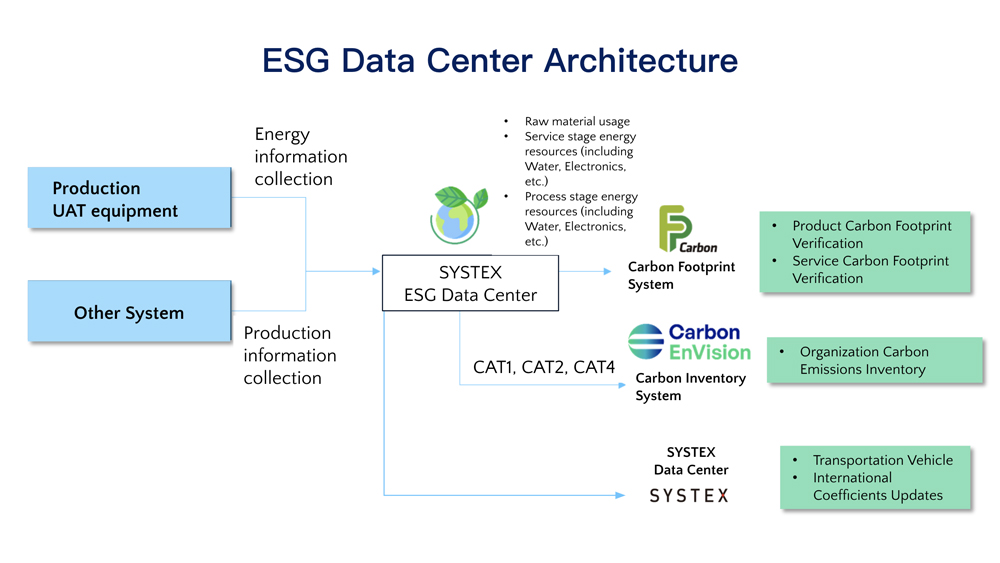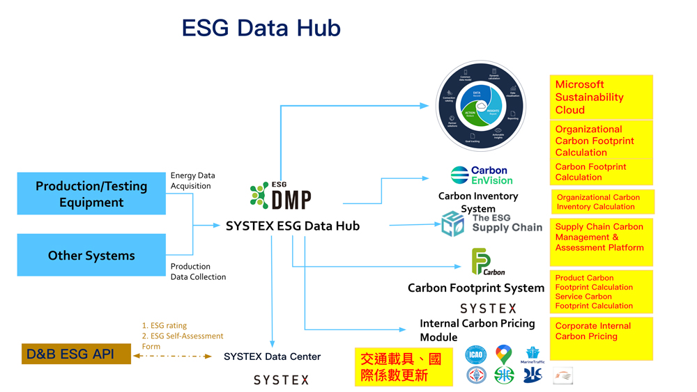 Using SaaS services, we provide carbon footprint solutions, including organizational carbon inventories and carbon footprint calculations. Through the ESG Data Platform, we help businesses integrate backend operational systems to achieve data automation. Additionally, SYSTEX’s data center, in collaboration with D&B’s ESG platform, supplies ESG Rating data to track supplier ESG progress.