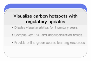 Currently, we leverage IoT and AI to identify carbon emission hotspots, integrate smart energy management systems for energy efficiency, generation, and storage, and offer a one-stop SaaS cloud-based carbon management system. Additionally, our ESG Data Platform automates carbon data collection and reporting.